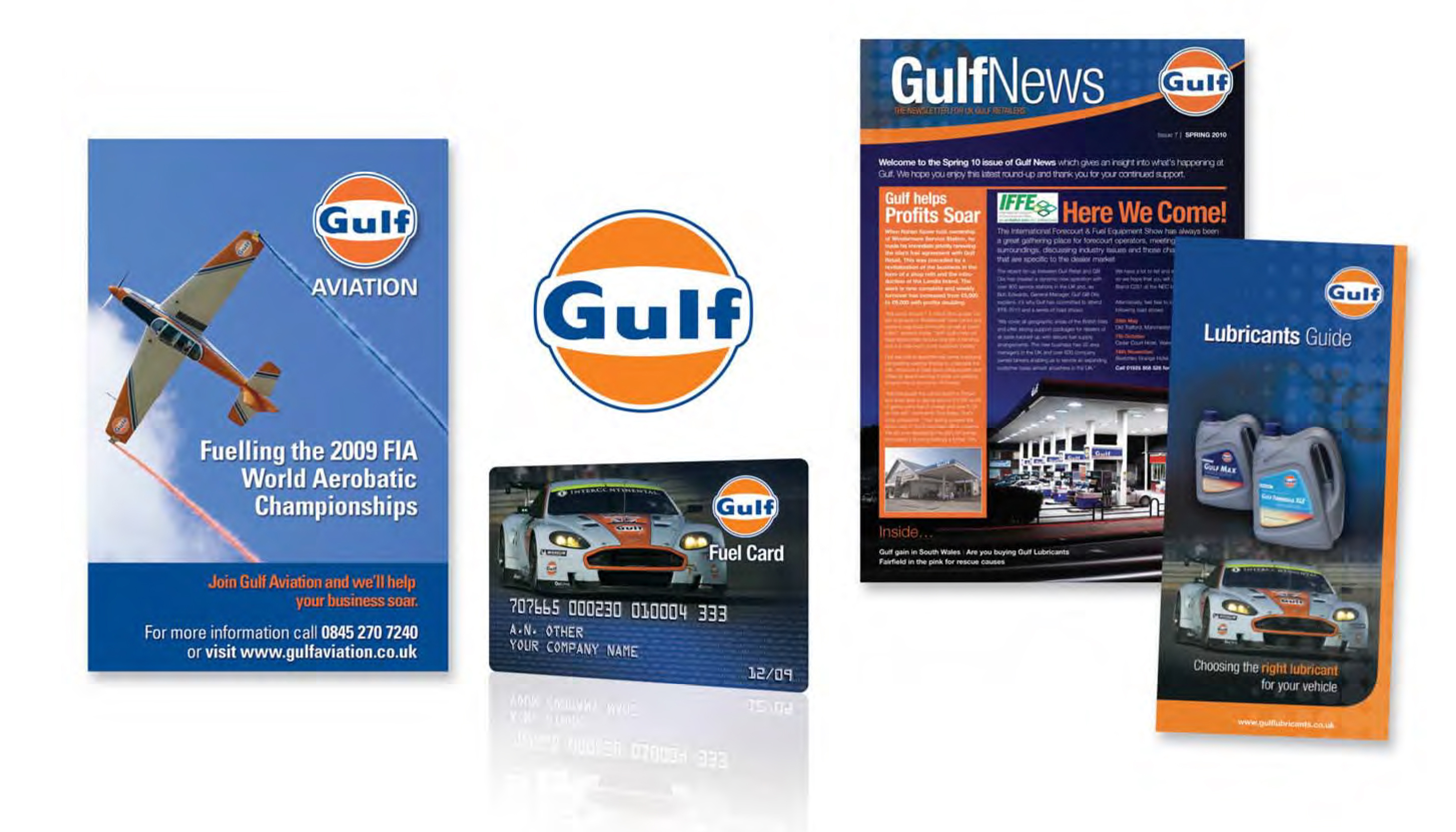 The Gulf brand has a heritage that extends 100 years and holds itself well in the market place. We have worked with the brand developing the look and feel on everything from printed collateral, forecourt display materials, fuel cards right through to the new packaging of there Gulf Competition Range Oil.